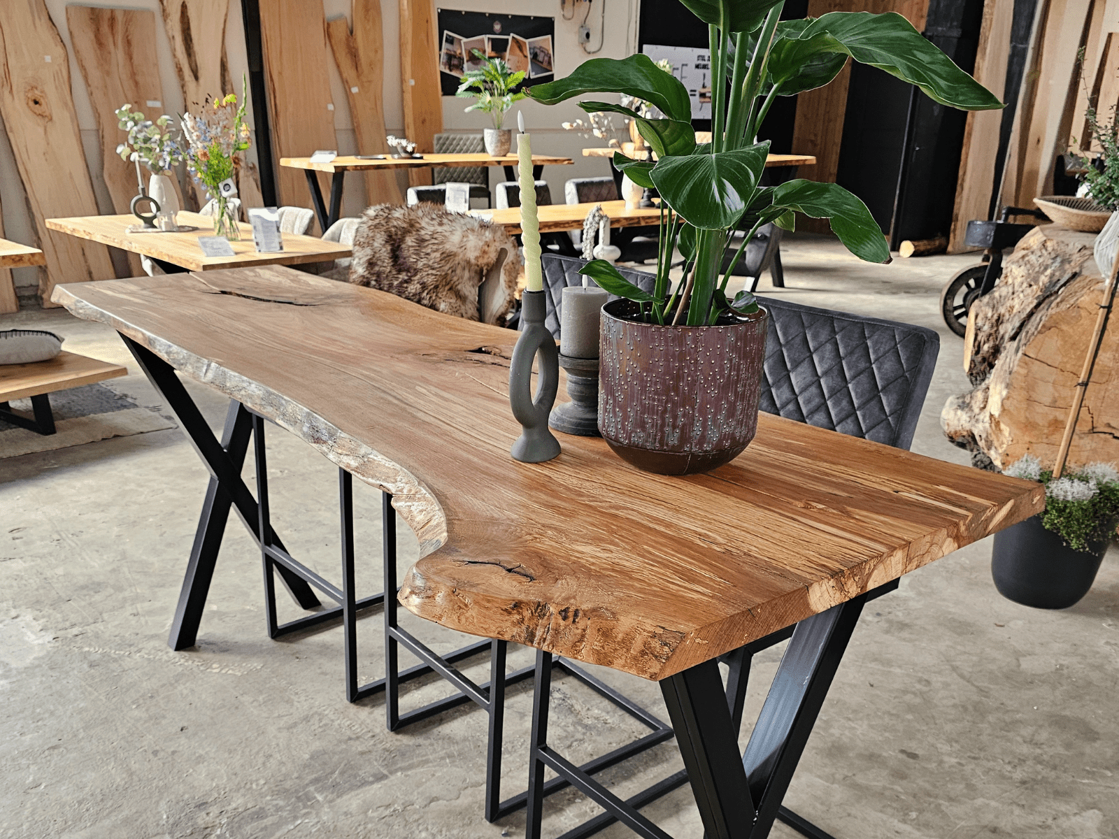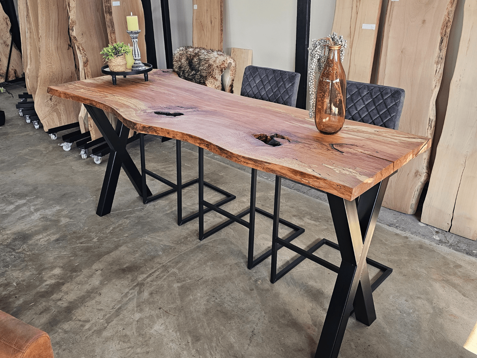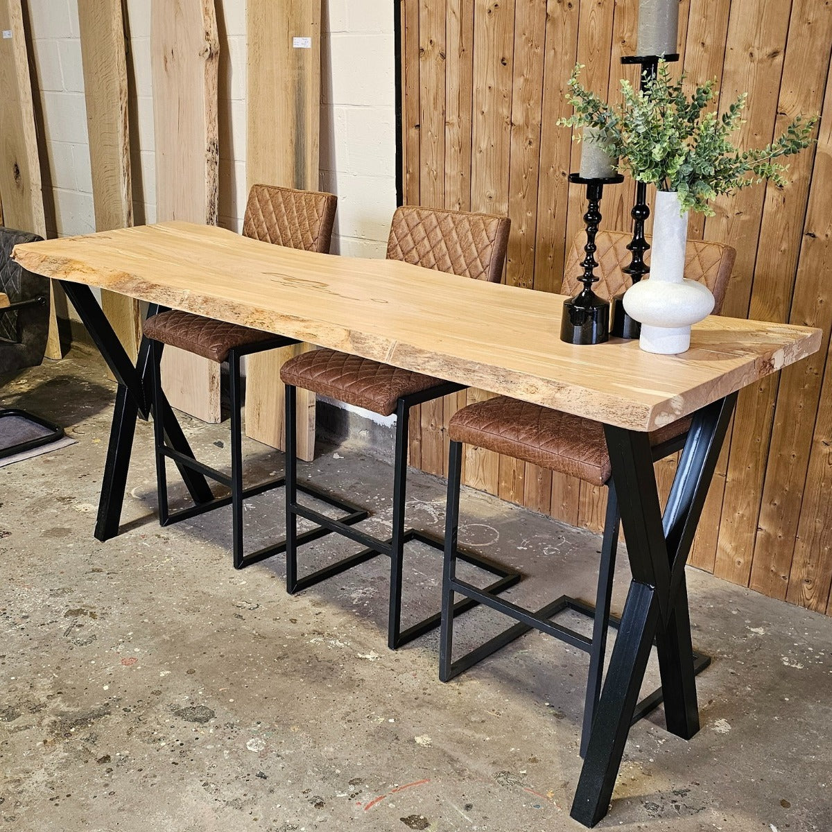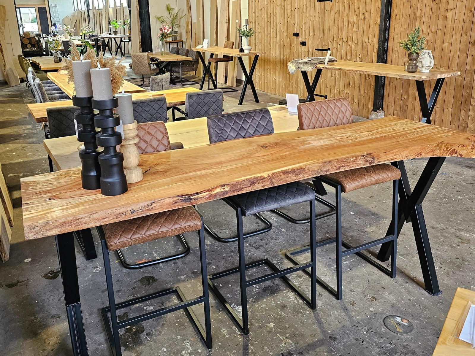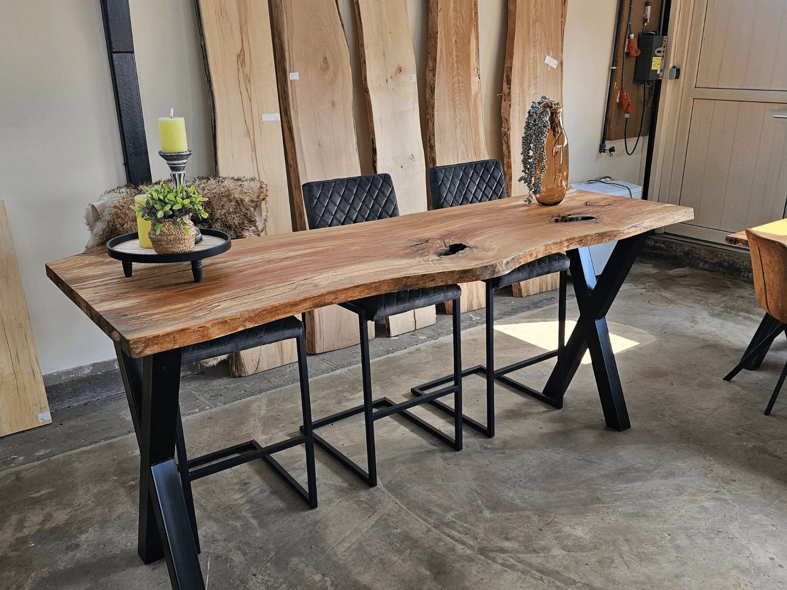 Massieve bartafels bij NP-Woodstyle zijn robuuste bar-tafels gemaakt van echt, massief hout. Je ziet ze vooral als natuurlijke, stoere tafels voor keuken, living of horeca-ruimte. Elk blad wordt rechtstreeks uit een boomstam gezaagd en laat unieke structuur, nerven en vormen zien; geen stuk is hetzelfde. NP-Woodstyle maakt deze bartafels ambachtelijk, met aandacht voor kwaliteit en duurzaam Nederlands hout. Je kiest zelf lengte en uitstraling, en combineert het blad met een onderstel dat past bij jouw stijl.