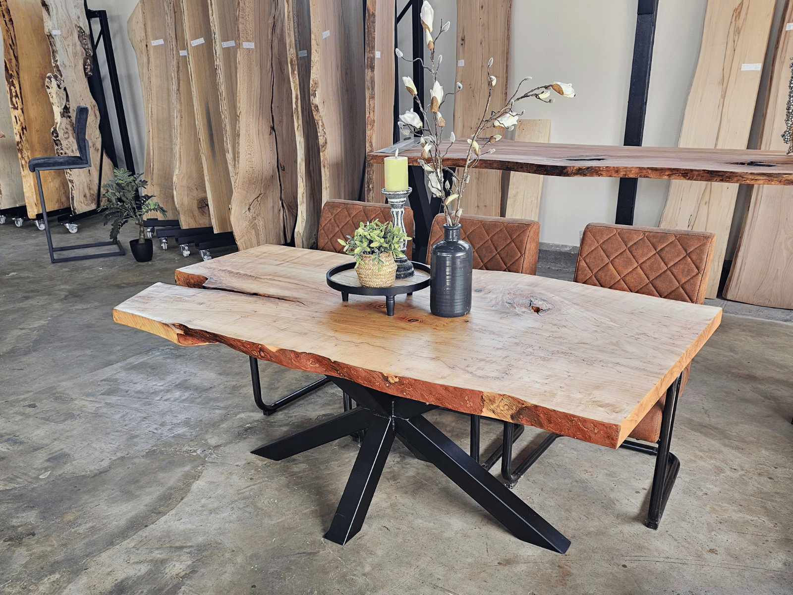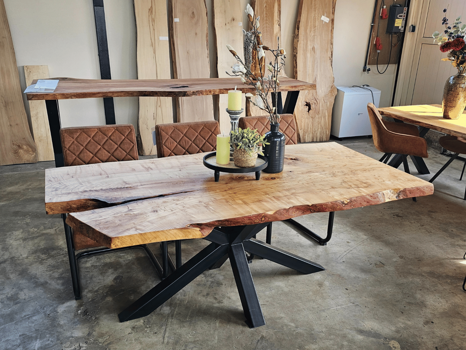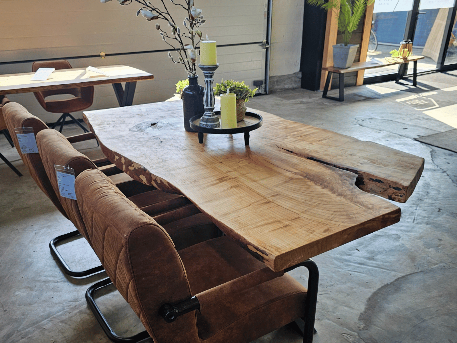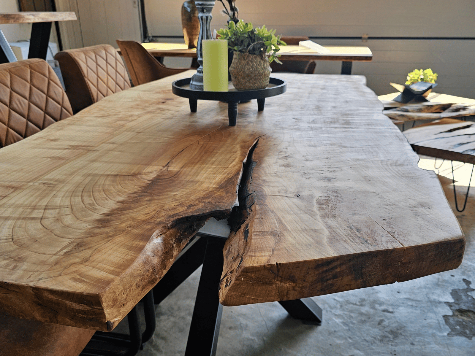 • Massieve Boomstamtafels uit één stuk