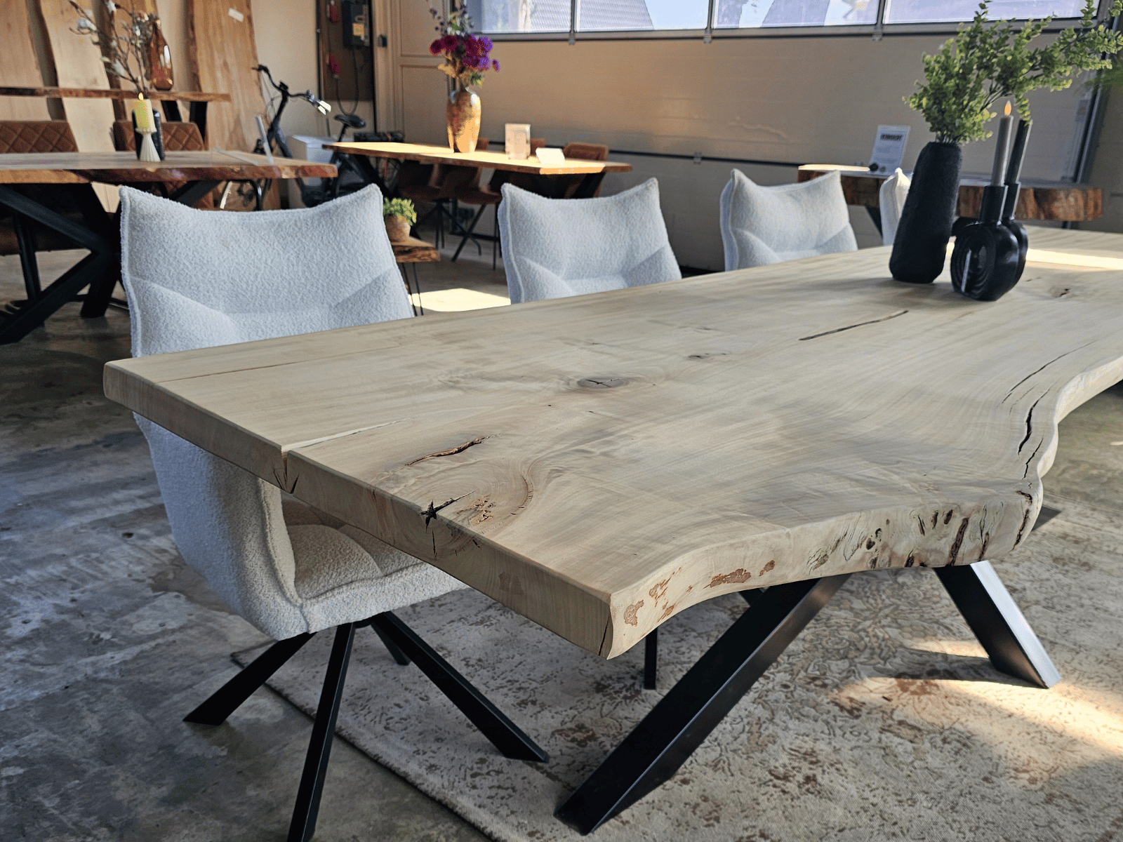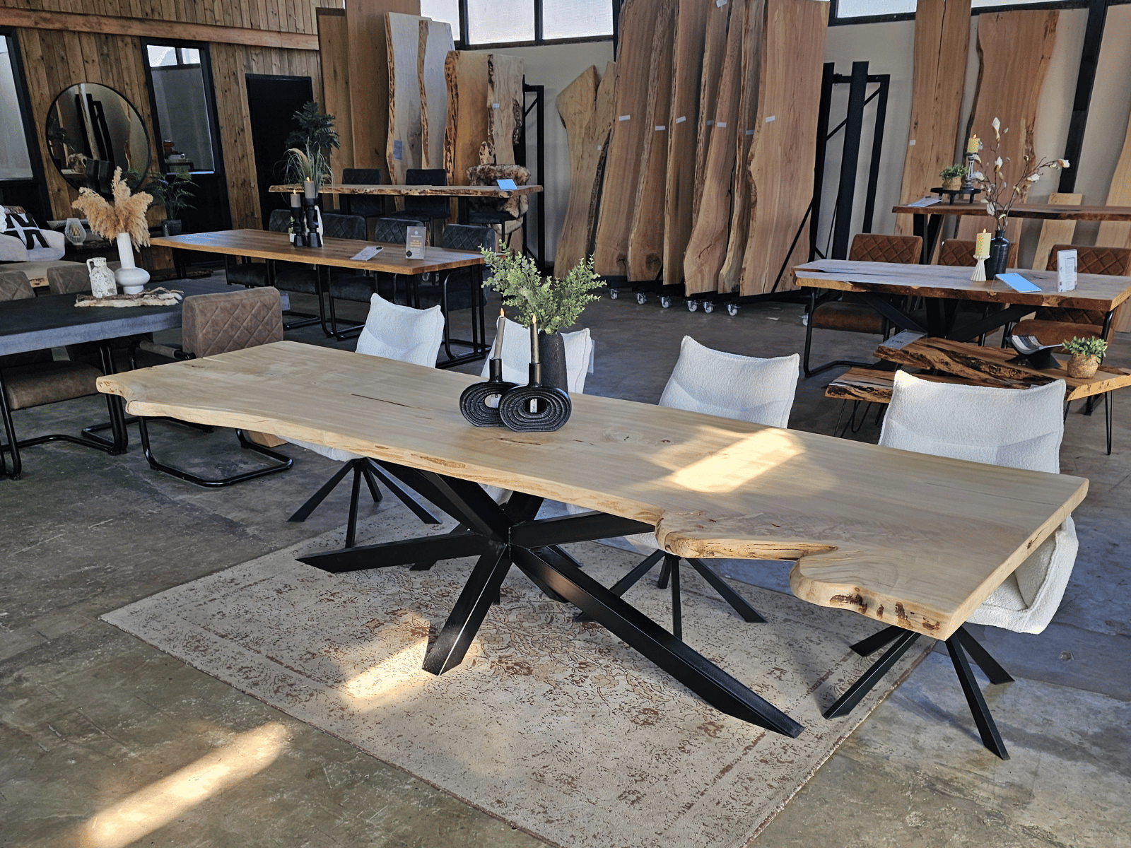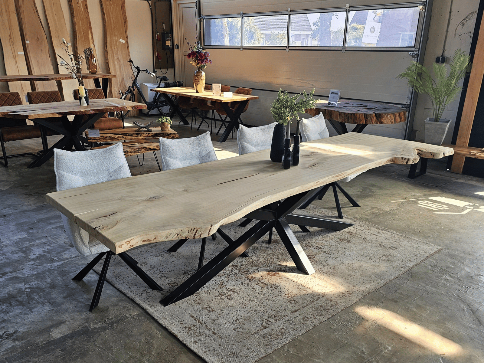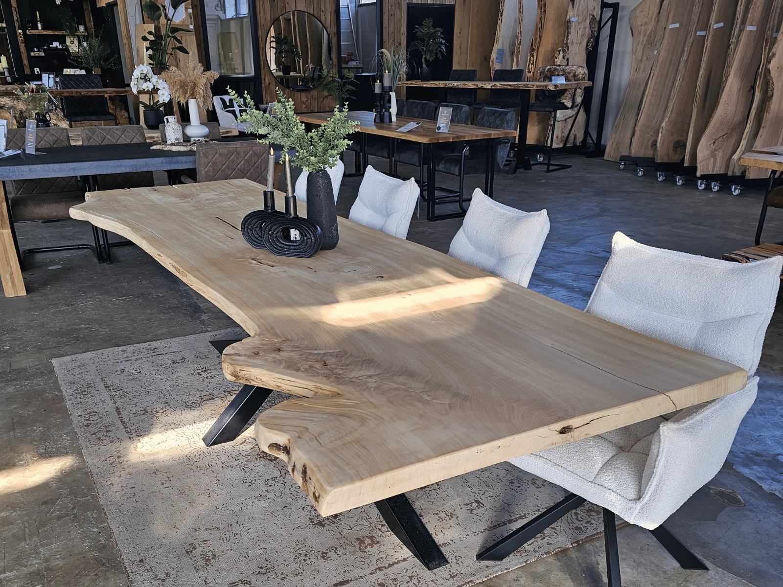 • Massieve Boomstamtafels uit één stuk